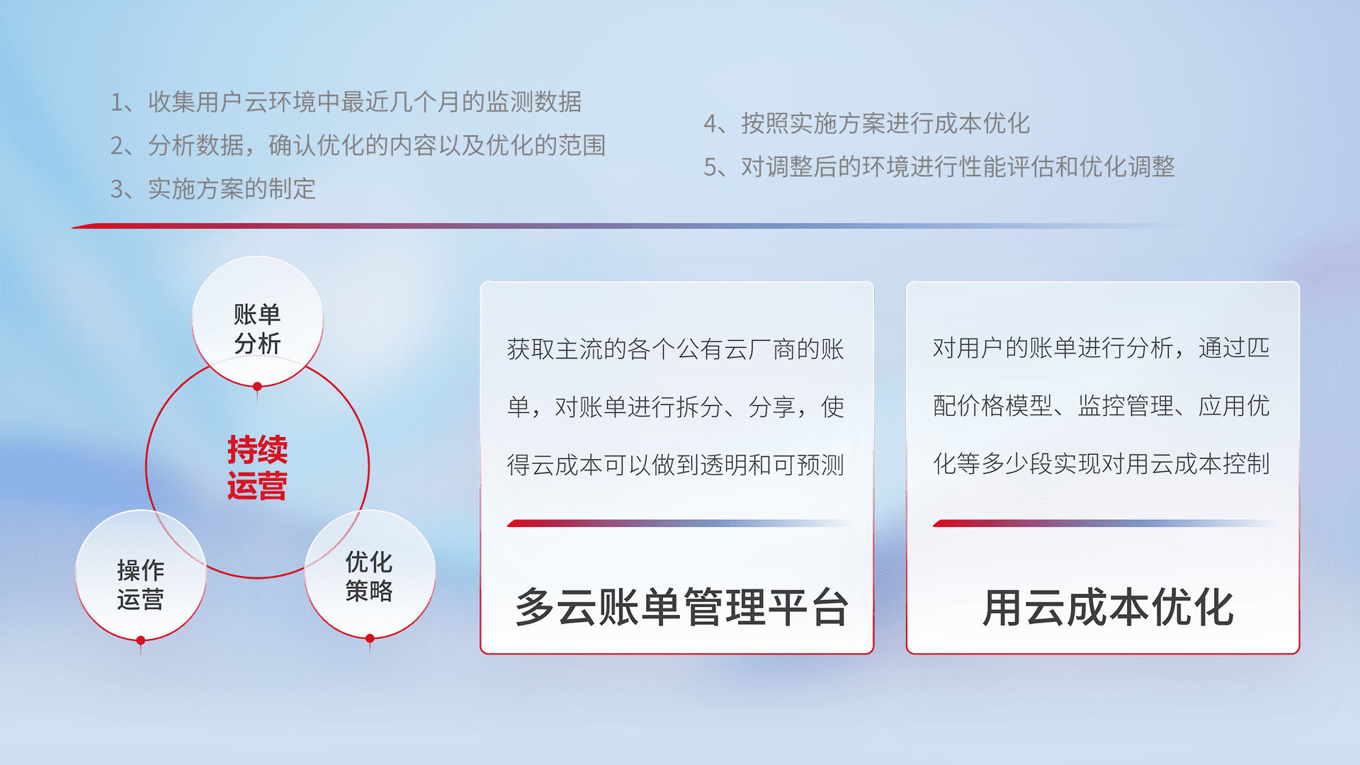 监控业务系统资源开销,,,,对资源的消耗精确计量,,,,实现费用的透明化管理,,不断提升资源使用率,,调整资源购买方式,,,,降低资源费用成本,,用云成本可预测、、、用云费用可优化,,,云资源配额有据可依。。。。